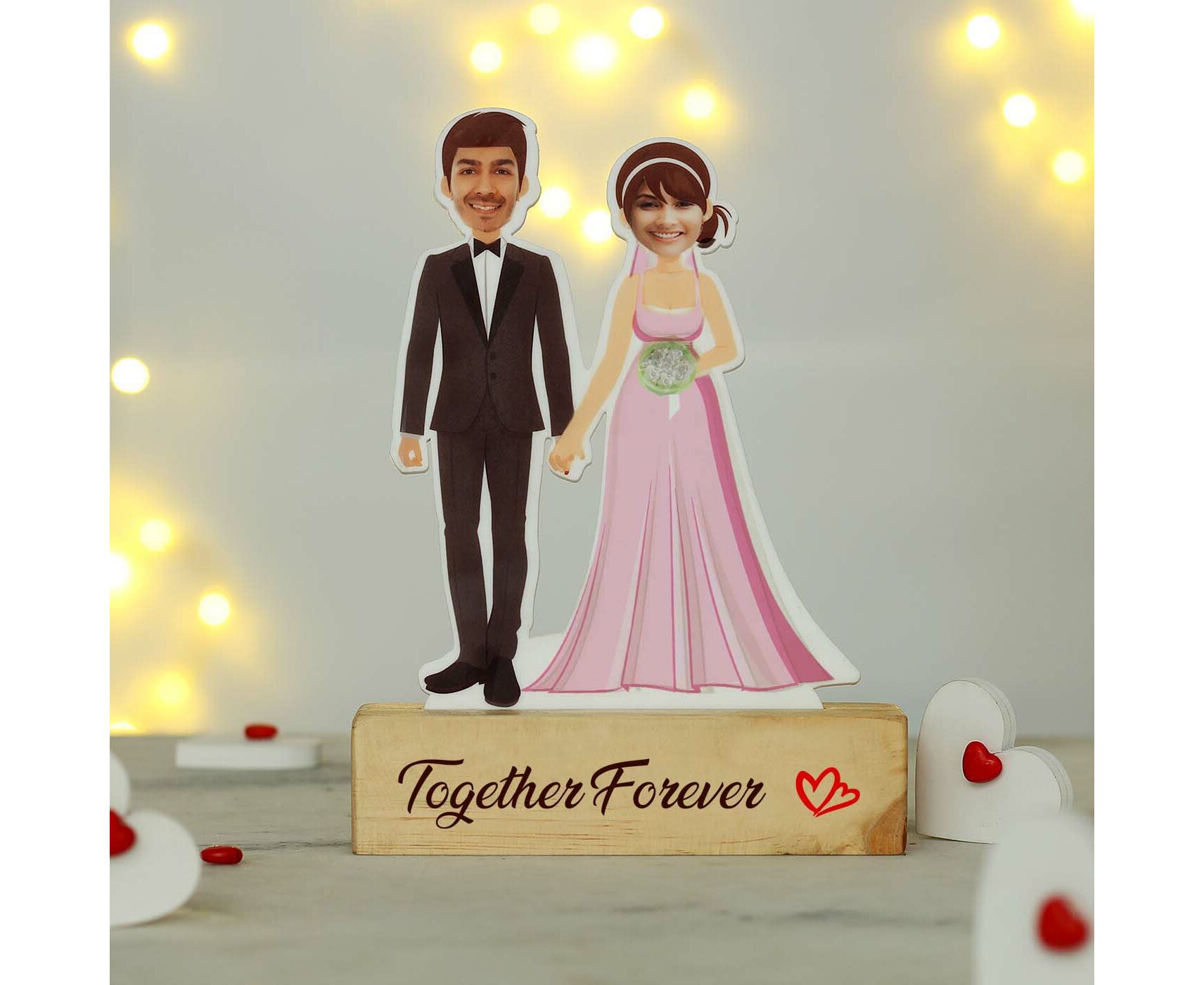 Dress your desk with the Cute Personalized Caricature for Couples that will bring out a cheeky smile every time you look at it. Personalize it with 2 front-facing picture. It's a cool keepsake of love and also a decor item for your study, mantel or office desk, a good gift option too.